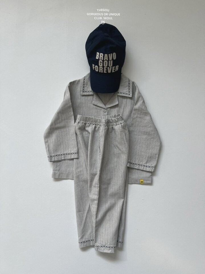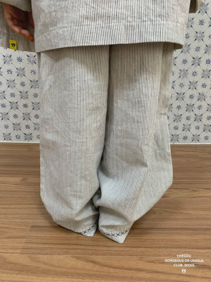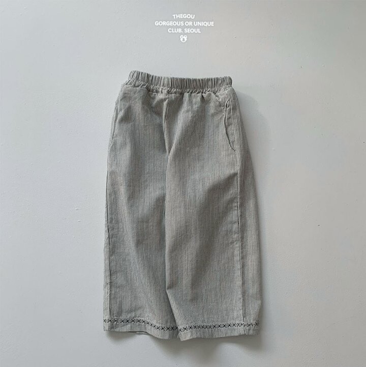 잔 스트라이프 원단에밑단 자수 디테일을 더해 포인트를 준 긴바지에요.🙋🏻♀️