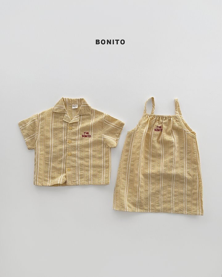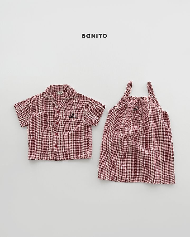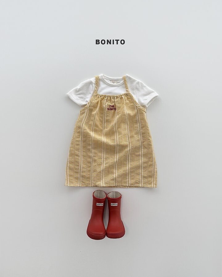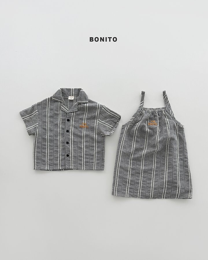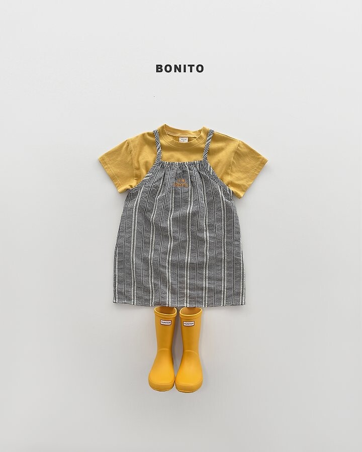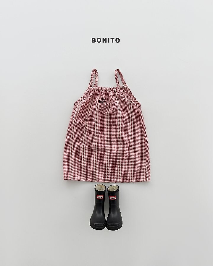 가볍고 시원한 소재에잔잔한 체크 패턴이 매력적인 끈 원피스에요.