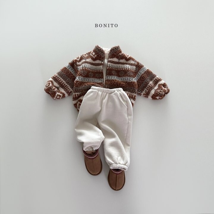 부드럽고 풍성한 덤블(뽀글이) 원단으로 제작된 지퍼 집업이에요.