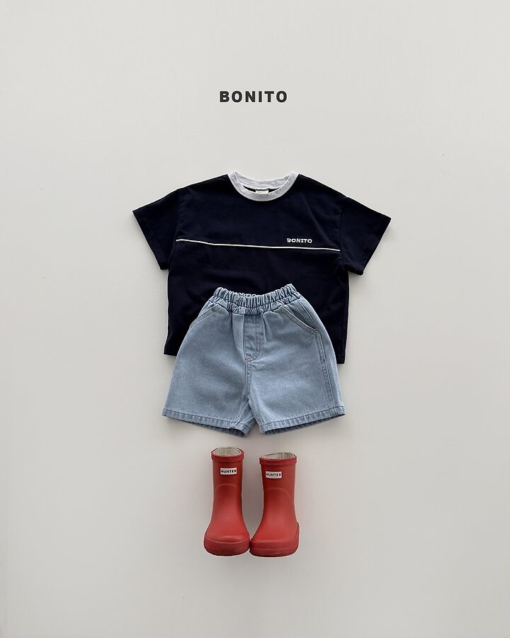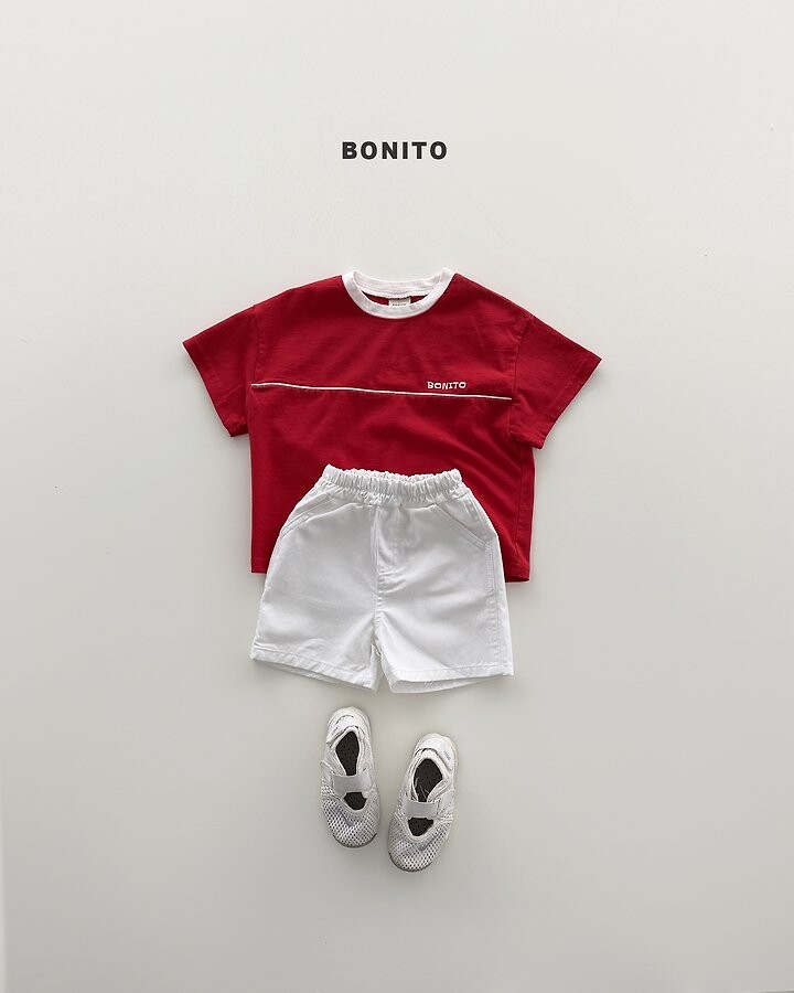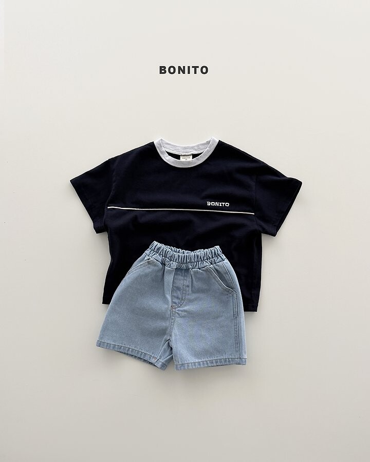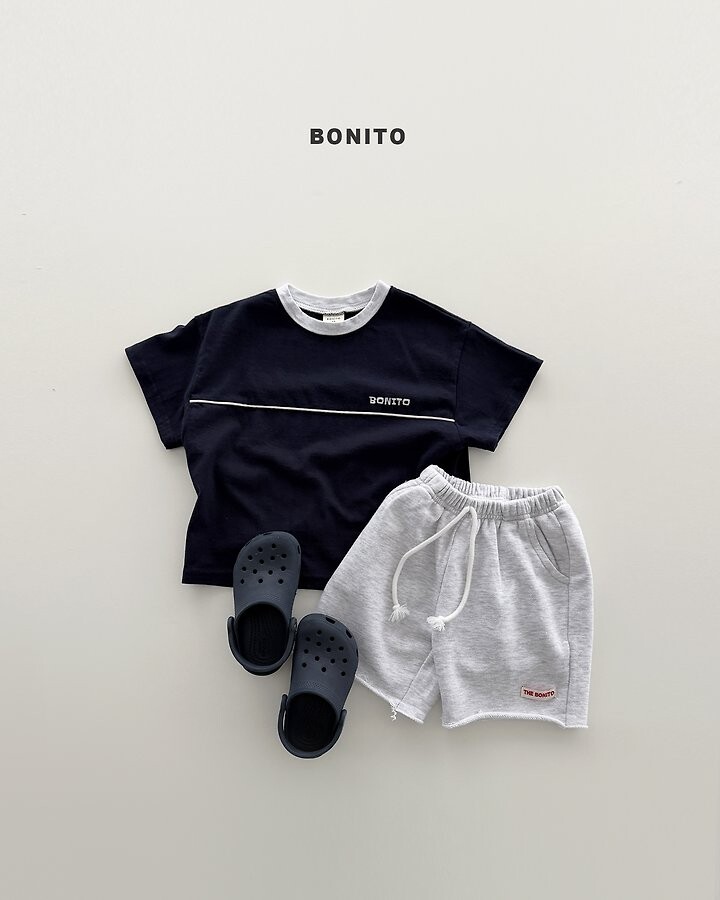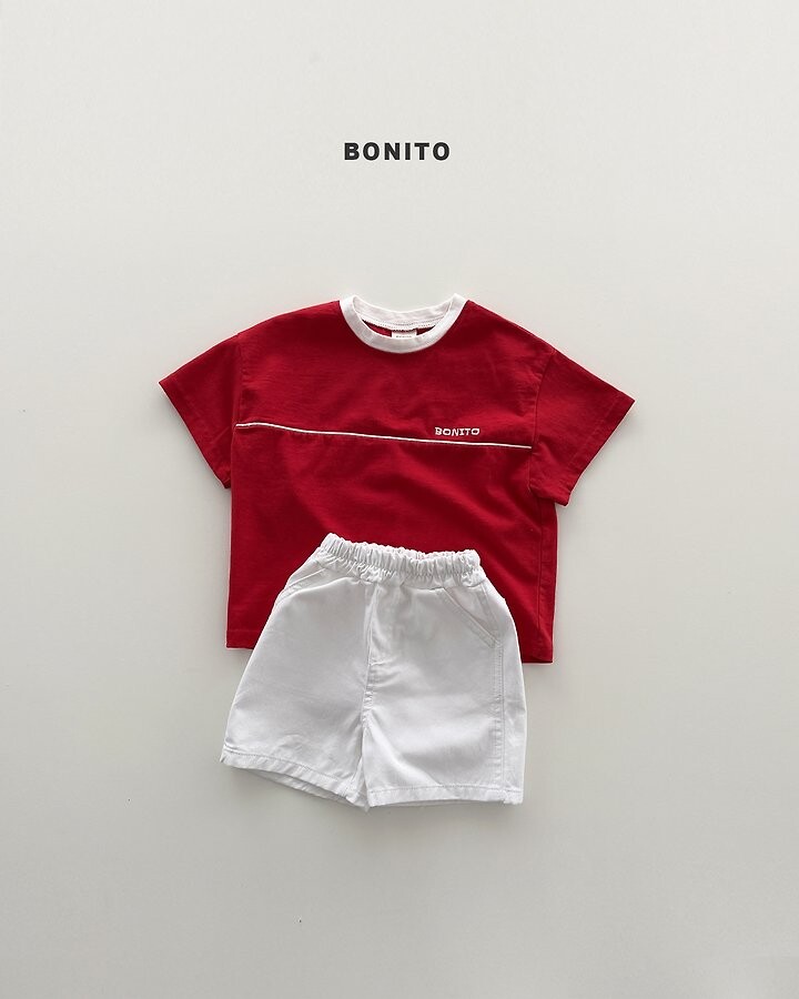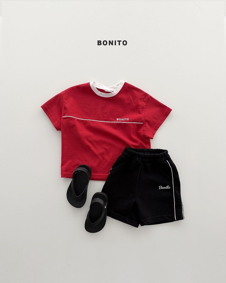 가슴 라인 절개 디테일과 삥줄 포인트로 스포티한 감성을 더한 티셔츠에요.