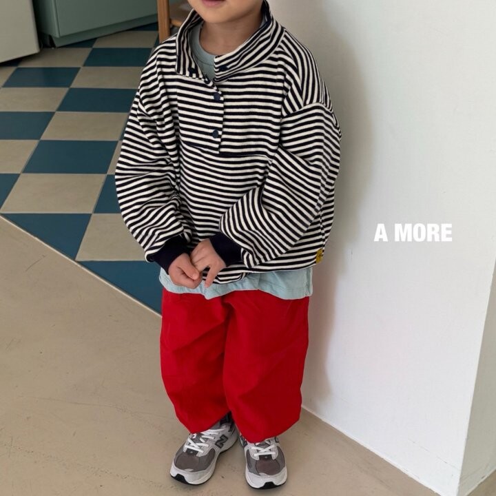 노멀워싱 클래식한 느낌의 스트라이프 아노락 맨투맨입니다.