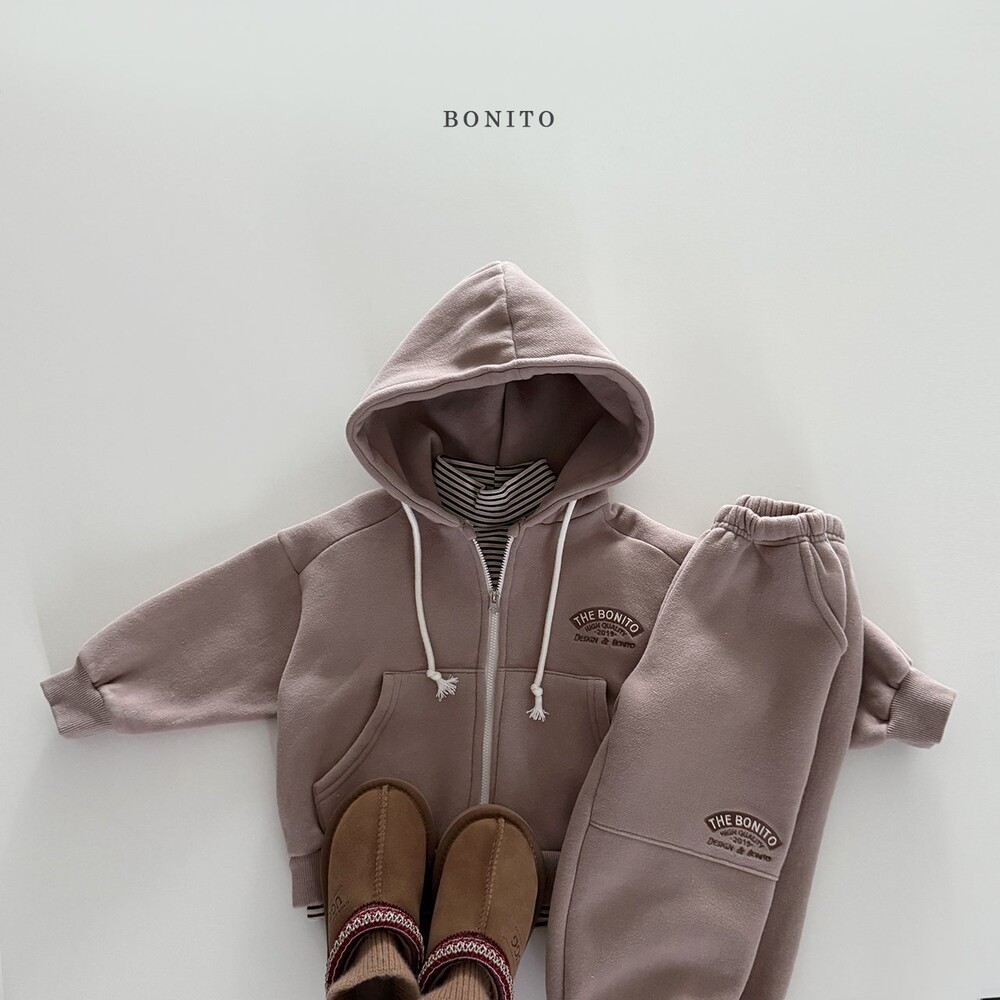 같은 원단의 앞절개 후드집업과 세트로 착용하면 완성도 높은 트레이닝 셋업