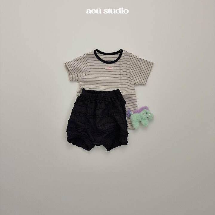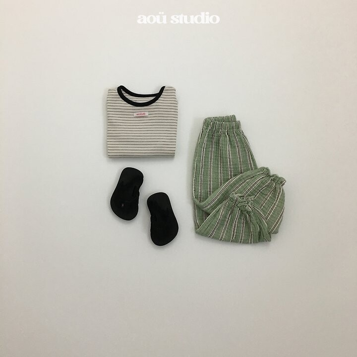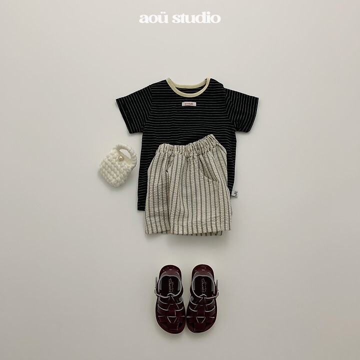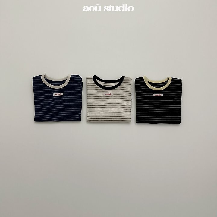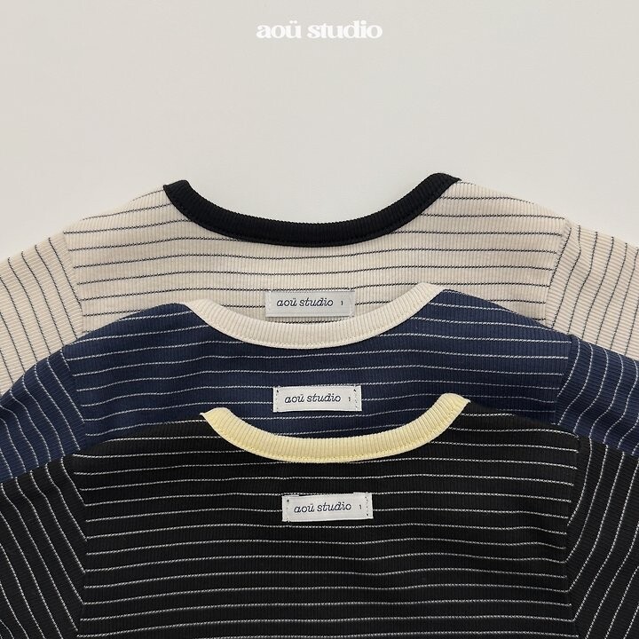 ▫ 스트라이프 패턴과 은은한 배색 포인트가더해져 차분한 분위기의 티셔츠에요