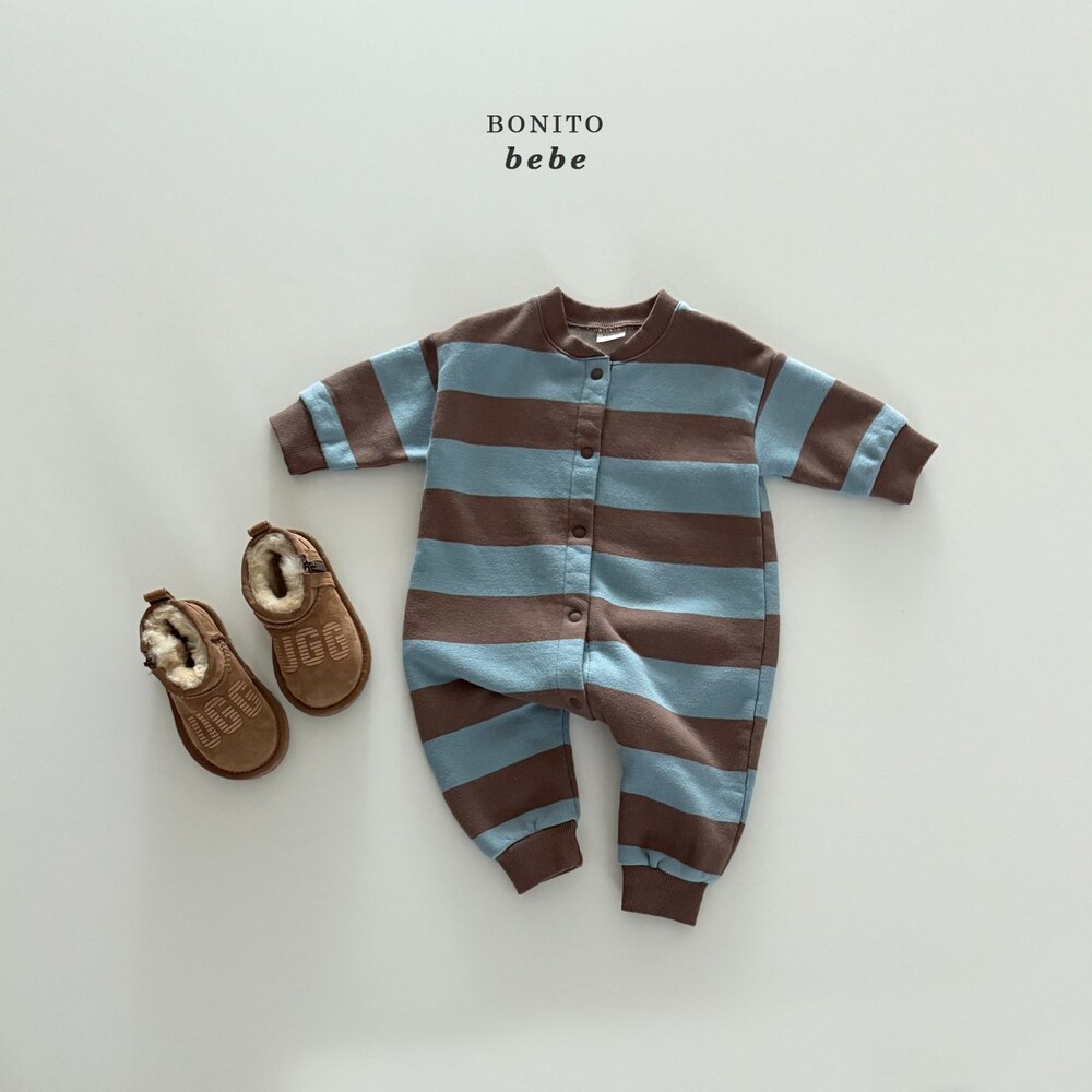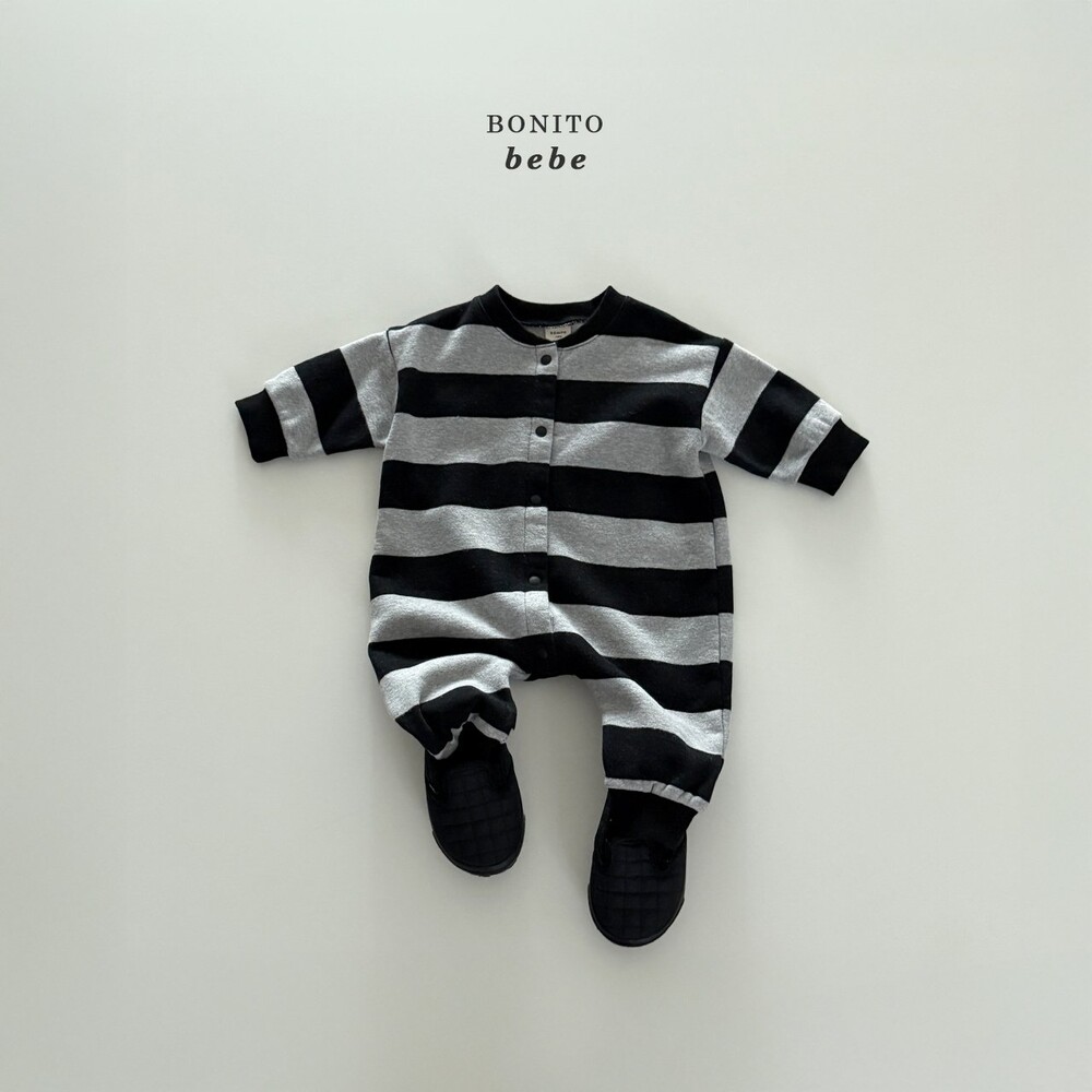 넥라인부터 밑단까지 이어진 스냅 버튼으로입고 벗기 간편하며 기저귀 교체도 손쉽게 할 수 있어요.