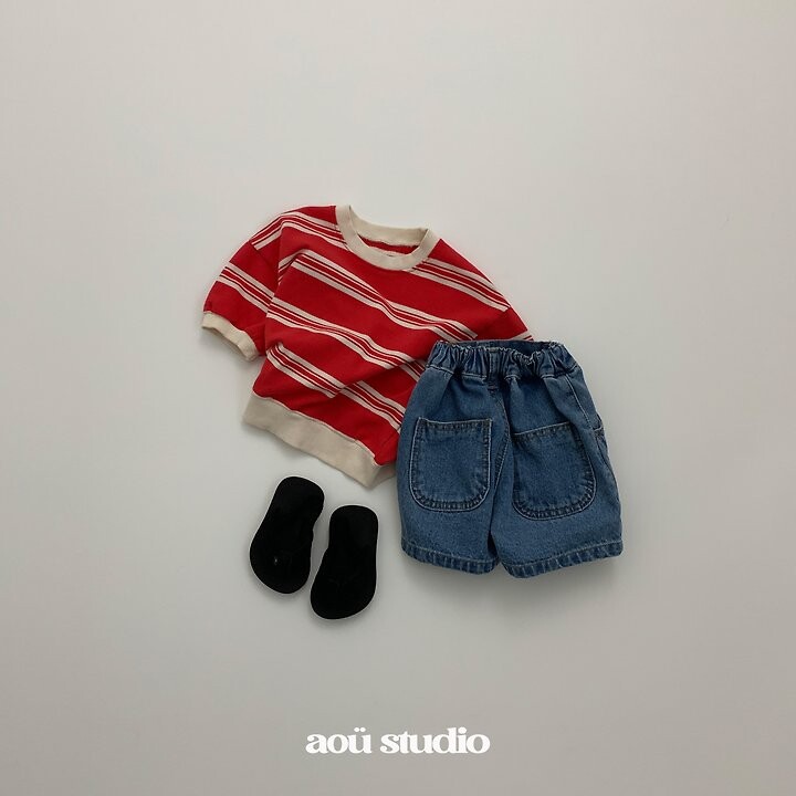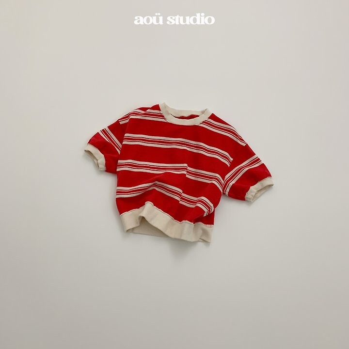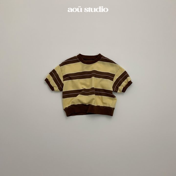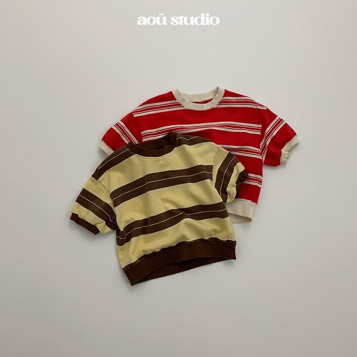 스트라이프 패턴에 배색 시보리 디테일을더하고 소매에 동글한