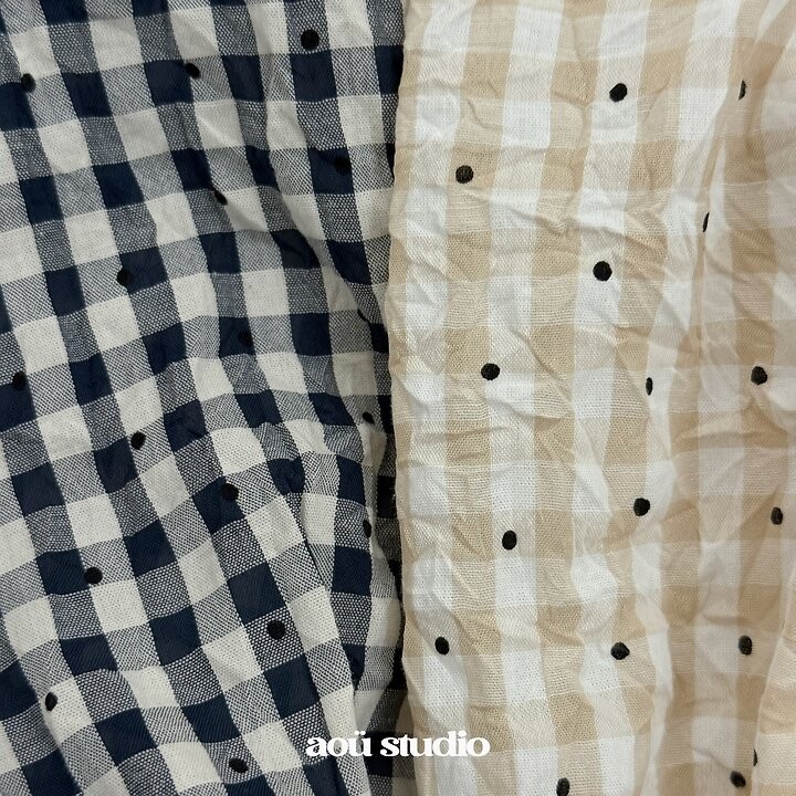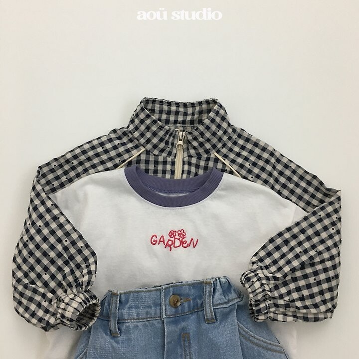 잔잔한 체크 패턴에 배색 라인 디테일을 더해캐주얼하면서도